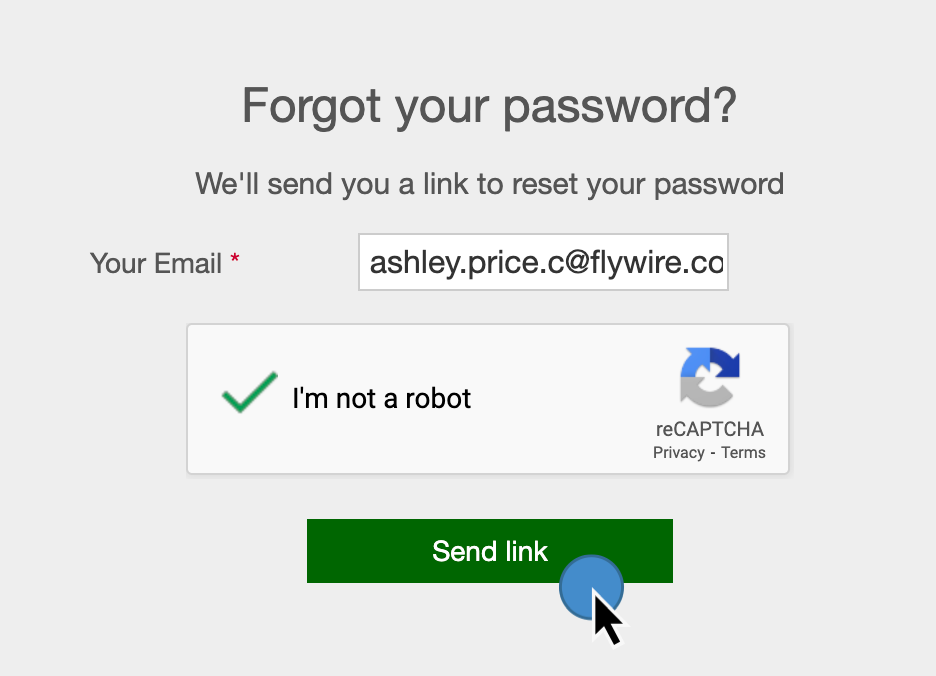 There may come a time where you are unable to log into your Flywire account due to an incorrect password. If this ever happens, you have the ability to reset your password on the Flywire login page.